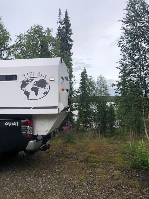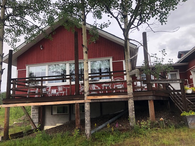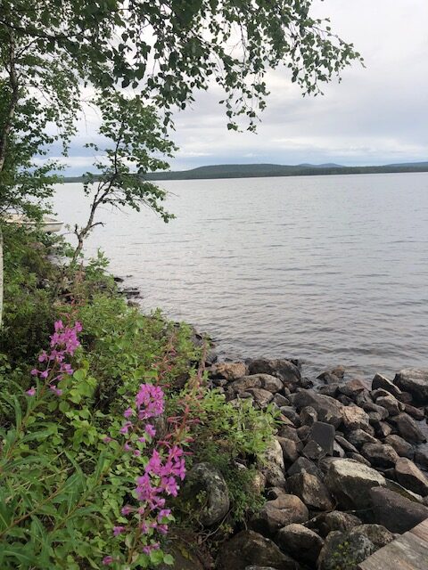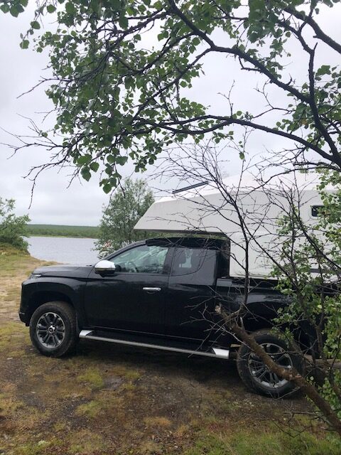 En Finlande, nous avons roulé jusqu’à Sarkijarvi. C’est à partir de là que nous avons commencé à voir des rênes un peu partout. Puis nous avons décidé de ralentir la cadence. Nous sommes venu à Sarkijarvi en février 2020 et nous avions passé une semaine de rêve. Alors, nous avons fait quelques kilomètres supplémentaires pour revoir ce coin tranquille. En hiver tout semble magique, grandiose, sans barrières et sans limites. En été nous avons trouvé des grandes herbes à l’endroit où nous allions au lac et nous n’avons pas pu nous en approcher. Les grandes étendues blanches où nous allions chasser les aurores boréales sont des terrains quelconques coupés par la route, les moustiques sont partout… Nous avons trouvé une petite place au bord du lac où nous avons passé la nuit. La magie de la Laponie en hiver n’est pas la même en été sous la pluie 😂 La pluie n’a pas cessé alors nous avons repris la route en passant par la station de ski où nous avions loué les motoneiges et où tout est triste et désertique… Au milieu de la Laponie, sous la pluie avec 12 degrés dehors, nous avons préféré rouler pour s’approcher un peu plus de notre but.