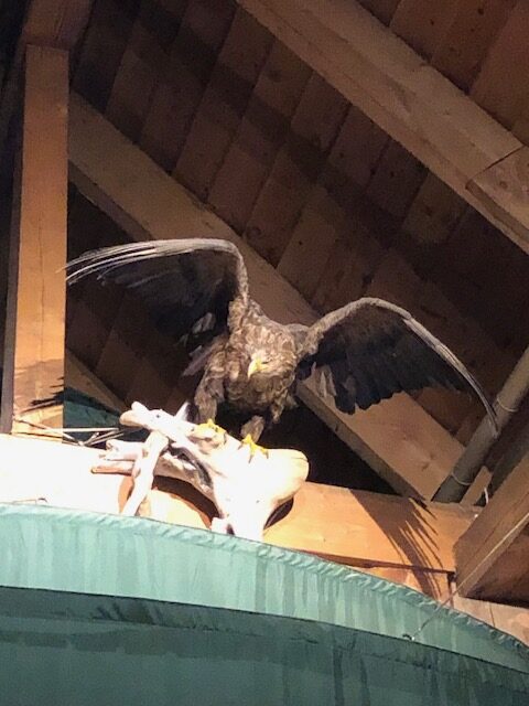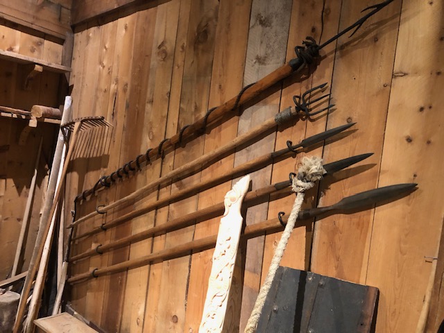 L’étape suivante nous conduit à un musée Viking. La première partie du musée expose les objets retrouvés sur le site. La deuxième partie du musée est consacrée à l’artisanat de l’époque avec différents ateliers. C’est avec une météo mitigée que nous quittons le musée pour découvrir la fameuse plage que nous n’avons pas pu atteindre lors de notre randonnée. La route nous conduit à d’autres plages de sable blanc tout aussi magnifiques avec des eaux vert émeraude et la montagne qui plonge dans la mer. La pluie a cessé et le soleil revient éclairer la mer et le ciel. Mieux que la télévision, la course du soleil au dessus de la mer, les lumières changeantes, les reflets sur l’eau animent ma soirée. Nous faisons des photos, parfois des vidéos de ces moments, de ces couleurs. Elles ne reflètent pas forcément la réalité, ce n’est pas facile de trouver le bon angle, la belle luminosité. Nos yeux voient toujours plus beau que le rendu photo et…. Nous ne sommes pas photographes 😉 Ces quelques lignes me permettront de me souvenir des sensations associées à ces images. C’est pour cette raison aussi que je ne parle pas que du positif et que j’essaye de retranscrire au mieux mes ressentis. En effet, ces lieux ne sont pas vraiment paradisiaques. Les paysages sont effectivement magnifiques, les couleurs et les contrastes changent rapidement. La mer est parfois bleue marine, turquoise, émeraude, parfois argentée ou rose mais elle est aussi grise et triste, voir déprimante sous la pluie ou lorsque le ciel est nuageux… tous ces kilomètres et on ne profite pas au maximum de la beauté des paysages… puis, les cris des mouettes attirent notre attention, on lève les yeux et nous voyons un magnifique rapace le long de la falaise… peut-être un aigle… Il ne faut pas désespérer, il y a toujours quelque chose de magnifique à voir ici.
