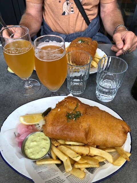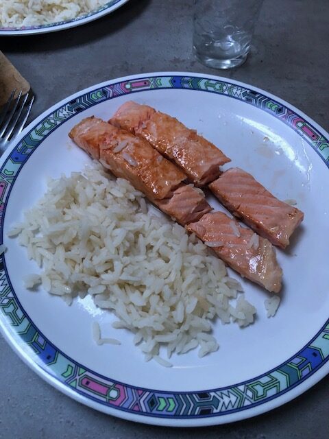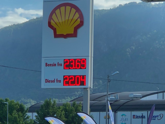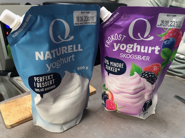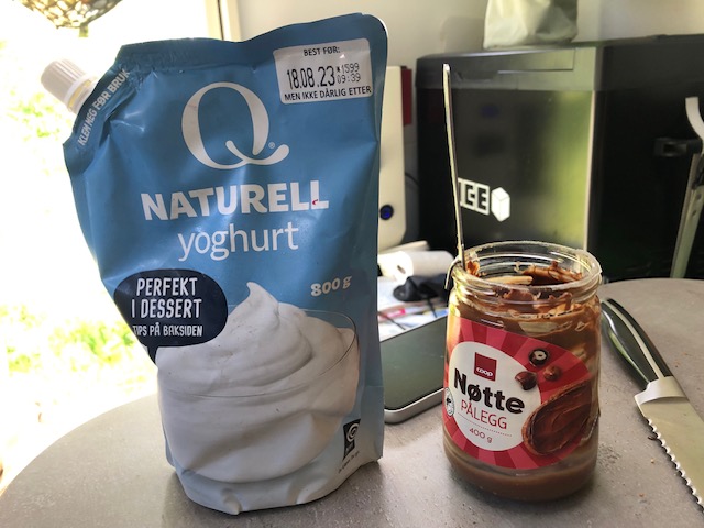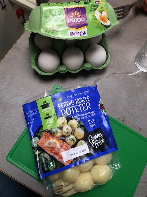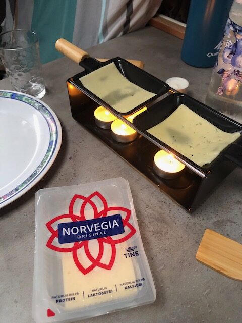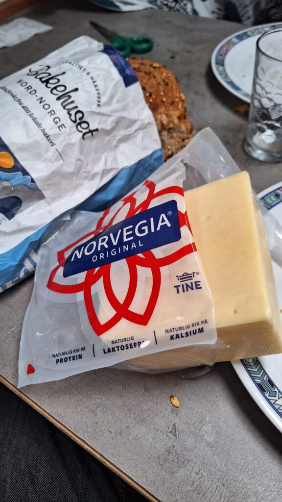 Nous sommes partis de chez nous avec le plein de nourriture mais il faut refaire des provisions de temps en temps. Les aliments sont en moyenne 2 fois plus cher en Norvège qu’en France. Il y a 11 ans, nous ne trouvions pas beaucoup de yaourt en pot (nature ou aux fruits), il y avait par contre, beaucoup de lait aromatisé en brique d’un litre. Cette année, nous avons trouvé des yaourts dans tous les magasins où nous sommes allés. Nous avons apprécié leur conditionnement, ils sont pratiques à transporter. Le lait est vendu uniquement au rayon frais. Les fruits et légumes sont hors de prix (8€ le kilo de tomates, 3€ le concombre). Nous avons trouvé une enseigne ou les légumes étaient un peu moins chers (Rema 1000). Les produits étrangers vendus sont ceux qu’ils ne produisent pas, comme les bananes ou les brugnons mais s’ils produisent un fruit ou un légume, on ne trouve que le produit norvégien en rayon. Les fraises, cerises, tomates, concombres ou pommes de terre… sont norvégiens. Nous n’avons pas trouvé de produits qu’ils peuvent produire d’une autre provenance que la Norvège. Presque tous les aliments sont conditionnés sous plastique. Le fromage, la charcuterie sont vendu tranchés, prêt à mettre dans les hamburgers ou les sandwiches. Le pain est bon, mais il ressemble plus à du pain de mie qu’à un pain bien croustillant. Il est vendu tranché ou en portion hamburger. Les clients utilisent beaucoup la machine à trancher. Des sauces bizarres (au fromage ?) sont vendues en tube. En France, nous avons l’habitude de trouver un choix impressionnant pour un même article. En Norvège, le choix est limité. Il n’y a qu’une sorte de chocolat, une marque de mouchoirs en papier, très peu de choix pour les pâtes ou le riz. J’ai fait une petite vidéo de ce que nous avons vu dans les magasins Norvégiens. Ce n’est peut-être pas une généralité, ce ne sont que des déductions de ce que nous avons vu. Il semblerait que les Norvégiens consomment de la nourriture industrielle, sucrée et épicée. De la nourriture rapide, des snacks. Nous avons en effet été surpris de voir les gens entrer dans une station service sans faire le plein et ressortir avec un hamburger ou une glace. Les restaurants ouvrent à 14h au mieux. Le plus souvent ils ouvrent entre 15 et 17h. Le service à table n’est pas systématique. Il y a un pot avec des couverts et des serviettes sur la table et les clients vont commander leur plat au comptoir ou par internet avec le QR code qui est sur la table. Nous n’avons pas tenté de restaurant en soirée. Nous ne sommes pas particulièrement attachés à la nourriture et nous ne cuisinons déjà pas beaucoup alors en vacances, on ne se casse pas la tête. Des petites salades composées, avec de la sauce norvégienne (qui ressemble plus à un fromage blanc assaisonné et sucré qu’à nos sauces de salade), un peu de charcuterie ou des saucisses norvégiennes (des sortes de knacks très épicés). Nous avons tenté le fromage norvégien fondu façon raclette 😂 Nous avons surtout mangé de délicieuses crevettes et du saumon fumé ou en filet. Nous avions l’intention de rapporter du saumon en France, nous avons attendu la fin du voyage (place dans le frigo et dates de péremption) mais nous nous sommes fait surprendre, nous avons trouvé moins de saumon dans le sud de la Norvège et surtout nous nous sommes retrouvés rapidement en Suède à la sortie d’Oslo 😢 l’Alcool n’est en vente que dans des magasins d’Etat . On peut néanmoins trouver un peu de bière en canette dans les magasins trois fois plus chère qu’en France. Nous avons emporté de quoi nous faire quelques apéros sans excès afin de ne pas dépasser les quantités autorisées en douane. Nous n’avons eu aucun souci pour trouver de l’eau pour remplir notre réservoir. Nous n’utilisons pas d’eau en bouteille, pour la consommation, nous purifions l’eau du réservoir avec un bidon spécifique. De nombreuses stations essence mettent à disposition de l’eau gratuitement. Dans certain pays, nous avons des difficultés pour trouver des poubelles, mais ce n’est pas le cas en Norvège. Nous avons été surpris par contre, de ne pas avoir forcément la possibilité de trier les déchets, beaucoup de parkings sont équipés de containers à ordures sans tri.