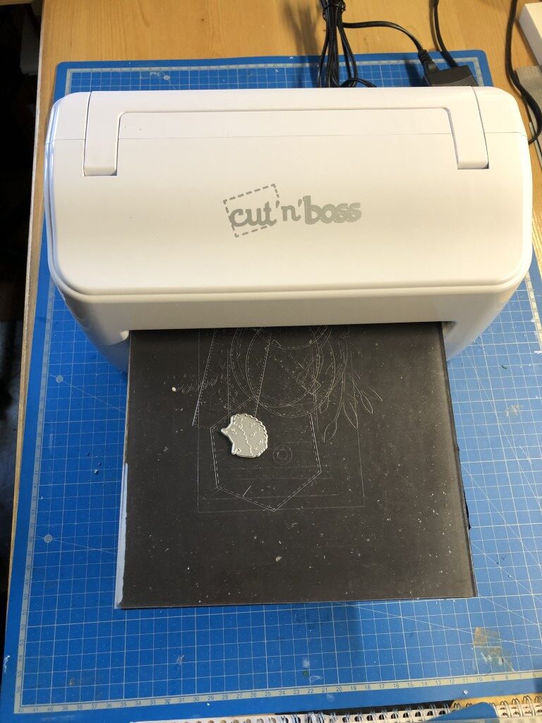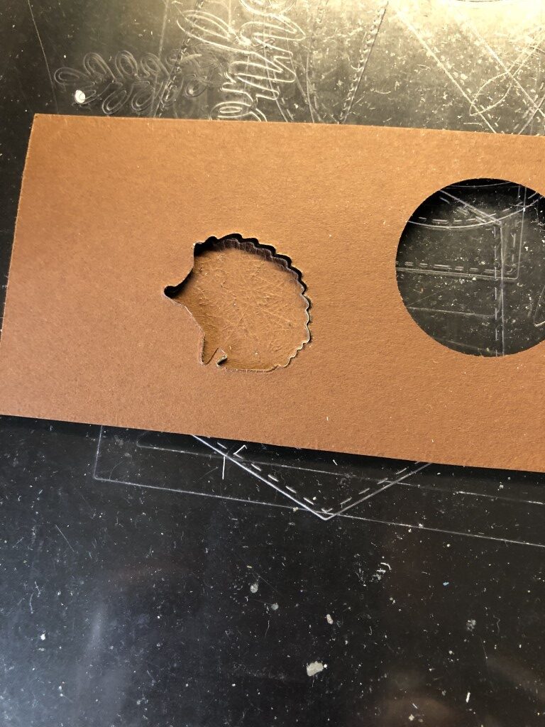 Pour découper il suffit de mettre du papier sur la matrice de découpe (ici un petit hérisson), de les placer entre deux plaques de plexiglas et de passer le tout dans la machine afin d’obtenir une jolie découpe.
