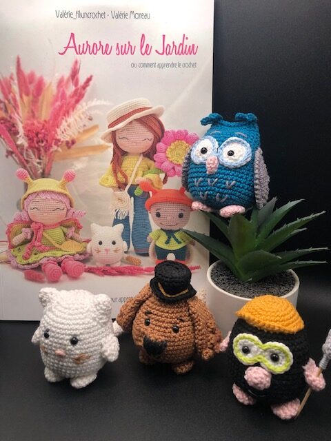 C’est sur Facebook que j’ai découvert Valérie_filuncrochet et ses magnifiques réalisations. Je ne savais pas crocheter, ma grand mère m’a appris à tricoter, mais à l’époque je n’avais pas envie de crocheter. Pour moi le crochet était synonyme de napperons et je n’avais pas envie d’en faire. Ce sont les livres de Valérie_filuncrochet qui m’ont donné l’envie d’apprendre. Avant d’acheter les livres, j’ai fait mes premiers points avec YouTube. Mes débuts au crochet sont ici. Lorsque je me suis sentie suffisent à l’aise avec le crochet, je me suis acheté un premier livre de Valérie_filuncrochet puis Papa Noël m’en a offert un second et j’ai encore craqué pour deux autres livres. Il me faut maintenant du temps pour faire toutes ces magnifiques réalisations.