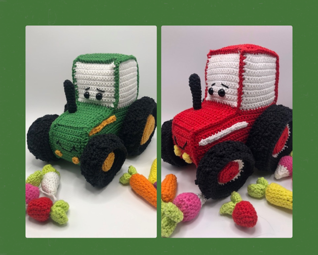 AussitĂŽt mamie se met en recherche d’un tutoriel. Jâai trouvĂ© un tutoriel gratuit en anglais que j’ai traduit et voici le rĂ©sultat. Comme mes deux petits garçons sont fans de tracteurs, je nâai pas pu mâarrĂȘter Ă un tracteur. Chacun le sien âșïž