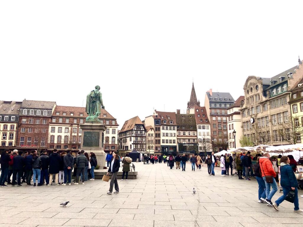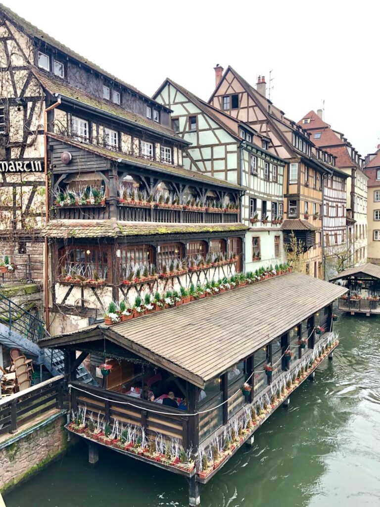 Une envie d’escapade, un week-end de 3 jours alors on ne réfléchi pas trop. C’est le week-end de Pâques mais on fera notre repas de famille le week-end suivant. Laurent installe la boîte sur le pickup et nous partons direction Strasbourg. C’est depuis que nous avons vendu le camping car et que nous voyageons en boîte fugueuse que nous visitons les villes. Une journée nous suffit, nous préférons et de loin la nature. En fin de matinée nous arrivons à Strasbourg, nous stationnons sur un P+ Tram. Une journée de parking, le ticket de tram et la possibilité de passer la nuit sur le parking. Cela nous permet de déambuler tranquillement dans Strasbourg la journée, de manger une flam au restaurant et de profiter de l’ambiance nocturne de Strasbourg avant de rejoindre la boîte pour y passer la nuit. Nous avons marché plus de 13 km pour notre visite de Strasbourg.