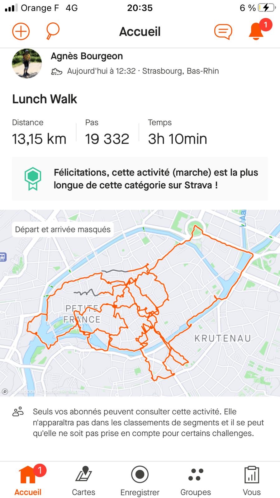 13 km en ville… on tient le coup avec des petites pauses régulières. Mala n’aime pas trop la ville mais elle est au top.