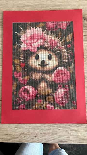 Au niveau activité manuelle, j’ai profité de ce repos pour lire, faire un peu d’aquarelle, du crochet (une page papillon et Charly) ainsi qu’une nouvelle activité que Stella m’a fait découvrir en m’offrant une toile (hérisson) pour mon anniversaire. C’est la peinture diamant.