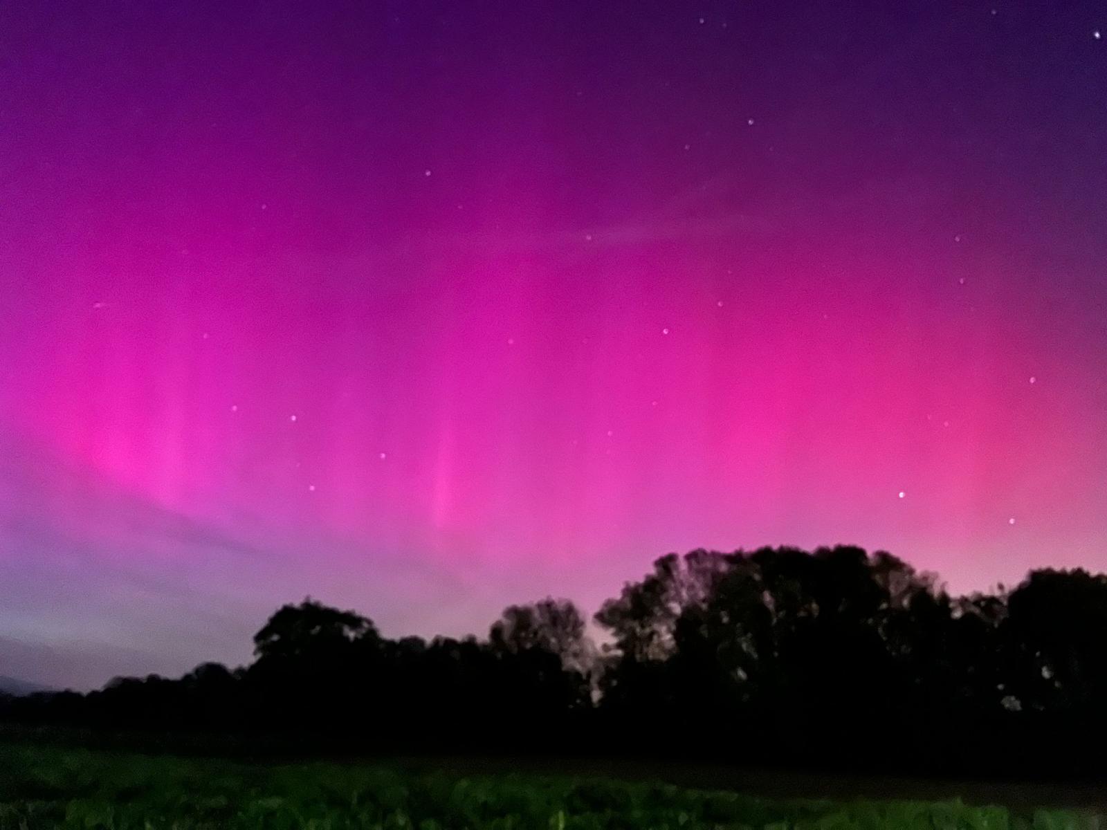 Par un belle soirée Claire envoie une photo d’aurore boréale. Surprise, je me demande ce que c’est. Les aurores boréales que j’ai vu en Laponie sont dans les nuances de vert et des aurores boréales ici ??? Cela me questionne. Alors je sors mais je ne vois rien. Il y a beaucoup trop de lumière dans le lotissement. Après avoir regardé le web pour comprendre un peu ce qu’il se passe, je tente une nouvelle sortie en regardant au nord sans être trop éblouie par les lampes de rue. Et là, c’est magique, le ciel est bien rosé. Il devient carrément rose à travers l’écran du téléphone. La nature me fait vivre de beaux moments.