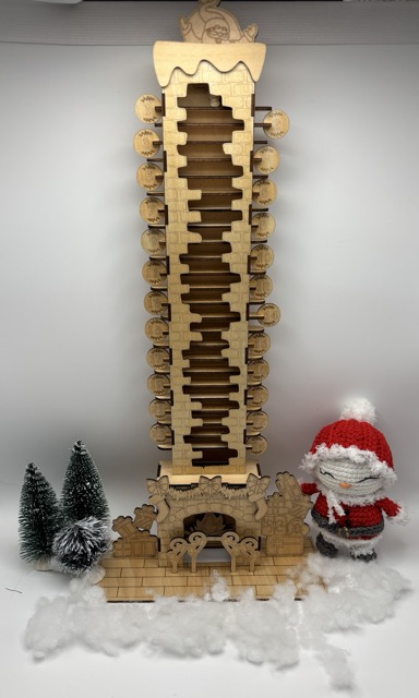 Dans un article « Monsieur et la découpe » je présentais une machine de découpe laser. Cette année, pour préparer les fêtes de fin d’année et changer un peu la décoration de Noël, j’ai proposé à Laurent de faire un calendrier de l’avent. Chaque jour du mois de décembre, il faut retirer une tirette pour faire descendre le père Noël dans la cheminée. Pas de friandises dans ce calendrier. C’est juste pour le plaisir des yeux.