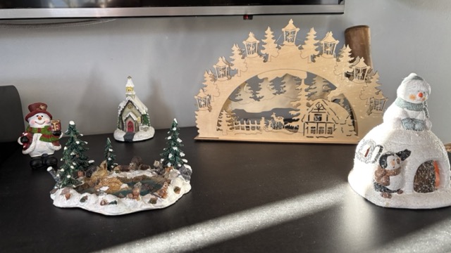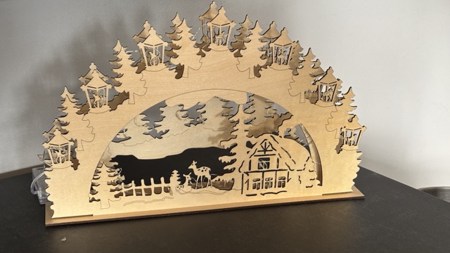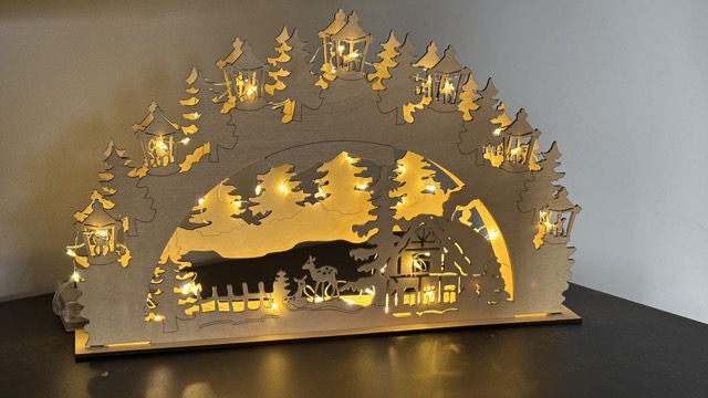Dans sa lancée, Laurent a découpé une jolie décoration. Nous avons ajouté une petite guirlande lumineuse pour faire un peu plus festif.