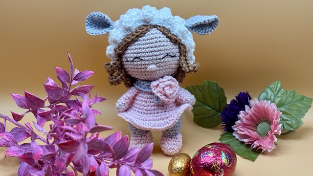 Pour Pâques, j’ai réalisé « Agnès l’agnelle » qui est aussi un modèle de Valérie fil un crochet. Elle est venue compléter les poules et poussins que j’ai réalisé l’année dernière.