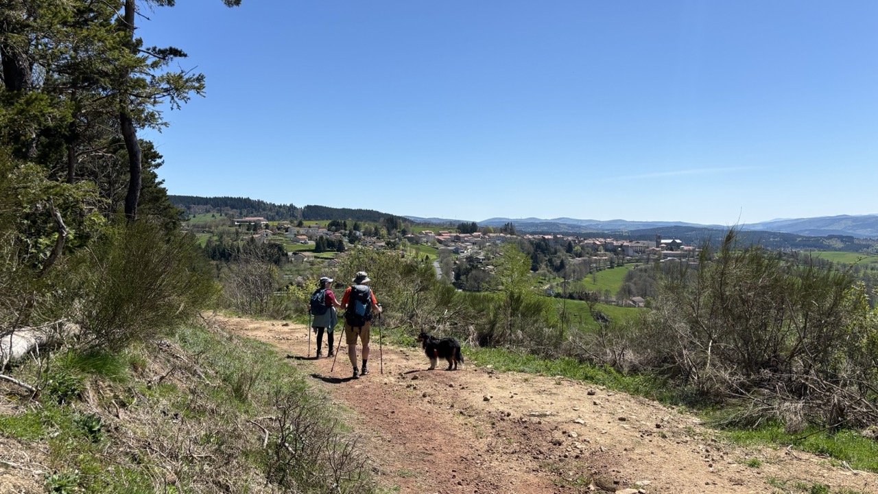 La troisième étape relie Ussel à Landos. Je trouve cette étape assez facile et presque monotone. Nous profitons d’une belle pause à midi car Laurent nous réserve une table dans une auberge au Bouchet Saint Nicolas. Nous y retrouvons Florence, la randonneuse avec qui nous avons partagé le gite. Nous passons un bon moment ensemble. C’est d’ailleurs difficile de reprendre la randonnée l’après midi d’autant plus que le vent se lève et rend la marche moins agréable. Nous n’avons pas le courage de marcher jusqu’au lac du Bouchet. Nous missionnons Laurent pour nous faire des photos. Nous retrouvons Florence au gite la Bascule à Landos après 16km, 201m de dénivelé positif et 130m de dénivelé négatif.