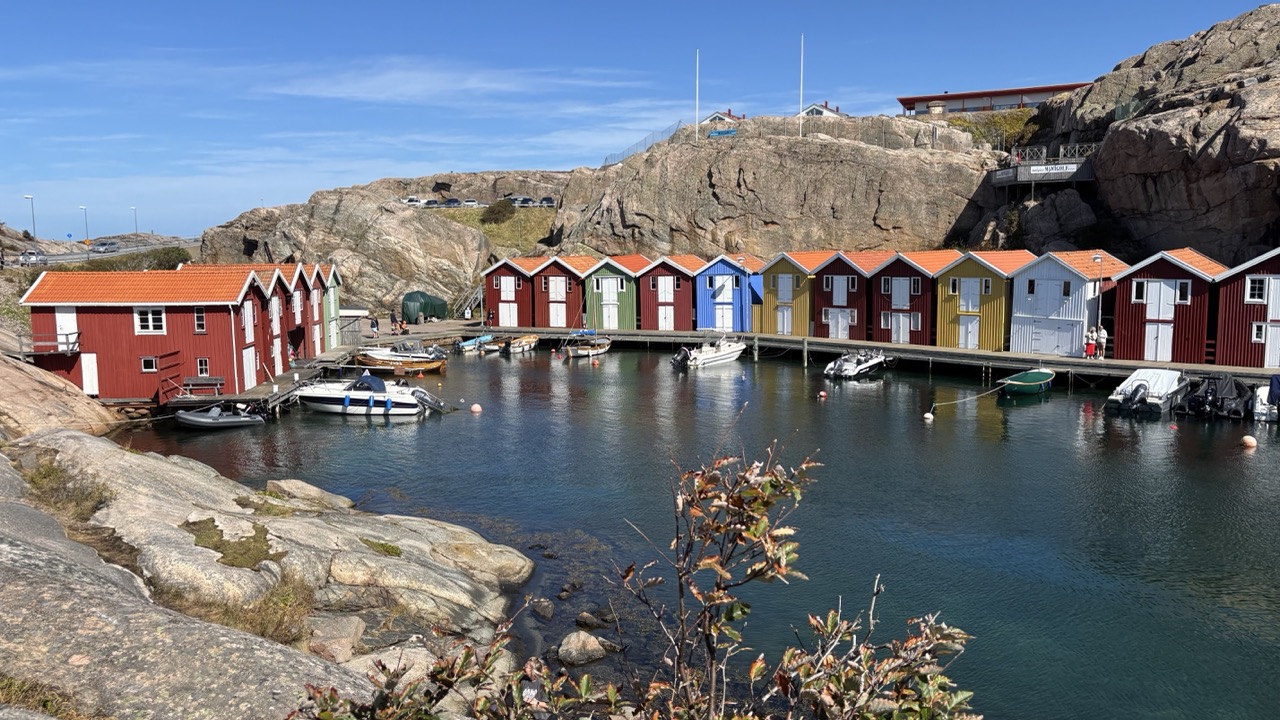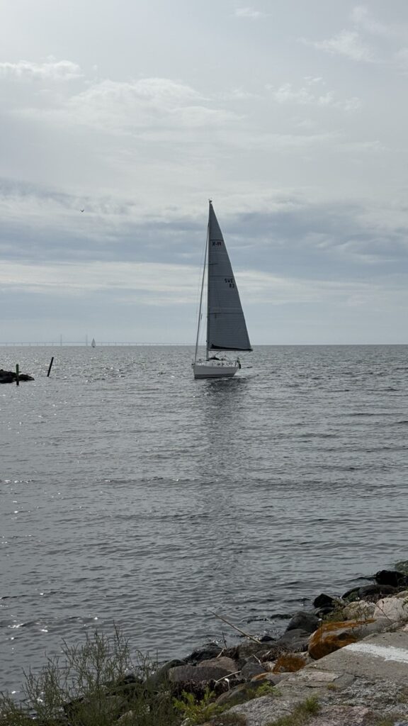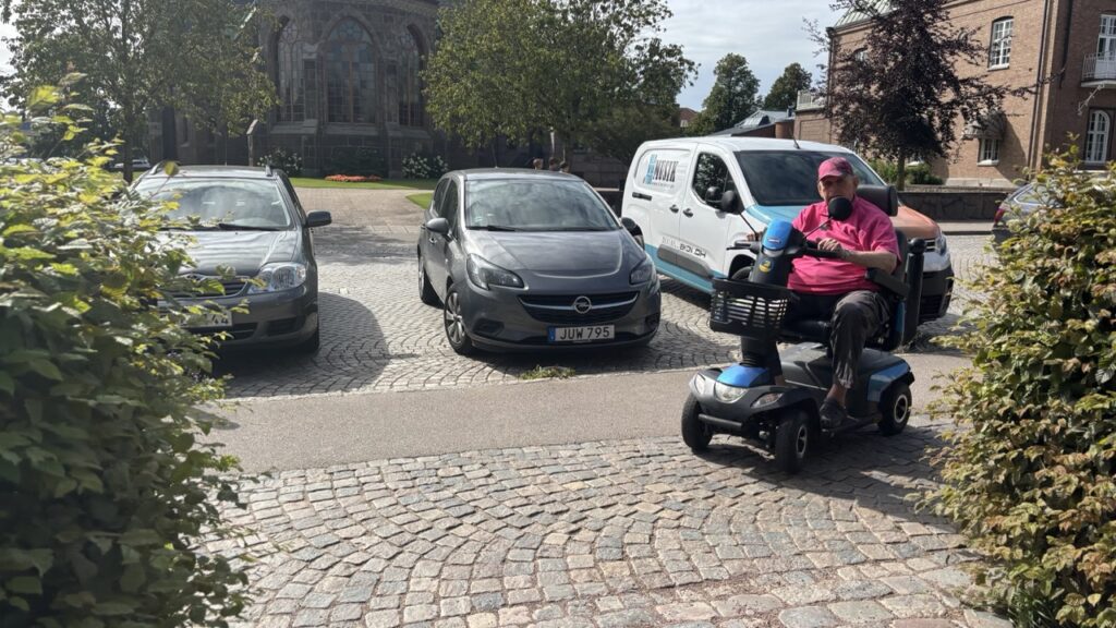 Après avoir passé le tunnel sous le fjord d’Oslo, notre premier bivouac nous rapproche de Smogen, nous décidons d’y retourner pour voir le port et ses jolies maisons colorée. Cette région de la Suède est très jolie avec ses gros rochers qui plongent dans la mer et ses jolis ports. Nous voyons une multitude d’oies dans les champs tout le long de cette côte que nous longeons pour nous rapprocher doucement de Copenhague. Avant d’y arriver, nous nous arrêtons dans des petits ports tranquilles ou nous prenons le temps de flâner et d’admirer les couchers de soleil. Nous visitons une ville avec une jolie église. Ici les églises sont rarement ouverte, on ne verra donc pas l’intérieur. Je prends le temps de photographier des personnes âgées. Nous avons déjà remarqué lors de nos précédents voyages en Scandinavie, que les séniors sortent beaucoup, ils se déplacent à l’aide d’un déambulateur dans les rues. Ce sont des personnes qui n’ont pas forcément l’air d’avoir des difficultés pour marcher, d »ailleurs ils marchent assez vite. Ici les déambulateurs ne sont pas réservés aux EPHAD, les gens les utilisent simplement pour sortir. Il y en a de toutes sortes. Du simple déambulateur aux petits véhicules électrique que l’on retrouve sur les routes.