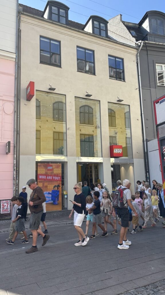 Nous essayons de ne pas arriver trop tard à Copenhague pour avoir une chance de trouver une place de stationnement. Le stationnement est en effet compliqué dans cette ville. Les quelques parkings disponibles sont utilisés pour stoker du matériel nécessaire aux nombreux travaux de rénovation de bâtiments. Après quelques tours dans la ville, nous trouvons une place où le stationnement est limité à 2h. C’est donc au pas de course que nous visitons la ville. Copenhague regorge de jolis bâtiments mais les travaux de rénovation et la circulation nous empêchent de profiter pleinement de notre visite. Les nombreux cyclistes circulent sur des voies spécifiques. Traverser cette voie pour faire une photo ou simplement pour changer de direction est presque aussi dangereux que traverser l’autoroute. Beaucoup de cyclistes ont des casques ou des iPod et roulent vite. Ajouté à cela la circulation, les véhicules de livraison, les barrières de chantier et les travaux, l’ambiance de la ville nous laisse un sentiment mitigé. Pendant nos deux heures de visite, nous avons eu le temps de voir les jolies maisons colorées le long du canal, le palais de la famille royale, une église et une boutique Lego. Nous avons manqué de temps pour profiter d’un restaurant en terrasse ou pour faire la visite de la ville en bateau néanmoins, nous sommes satisfaits de notre visite.