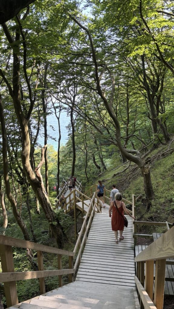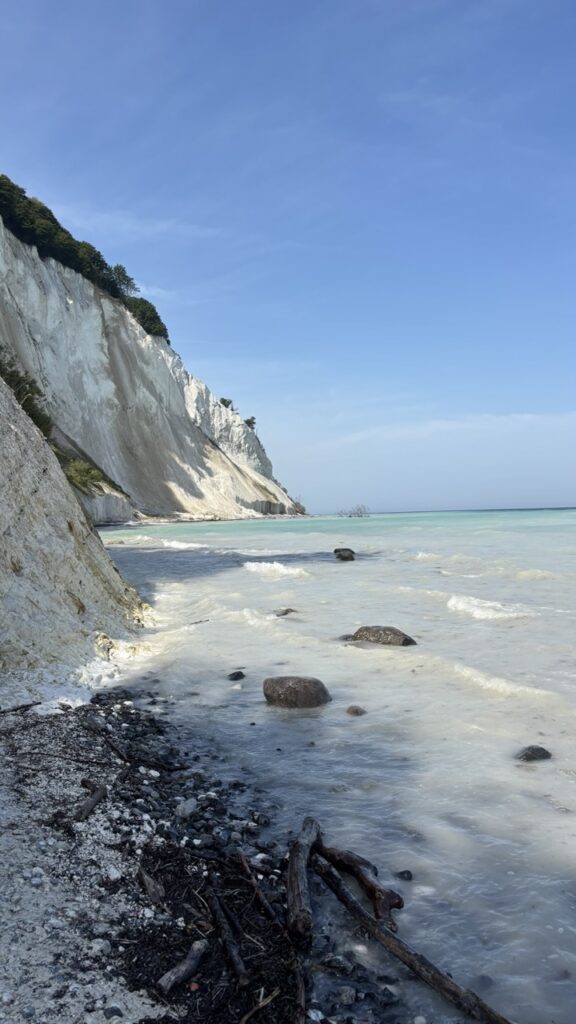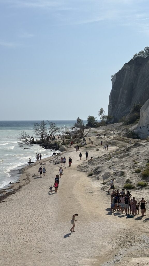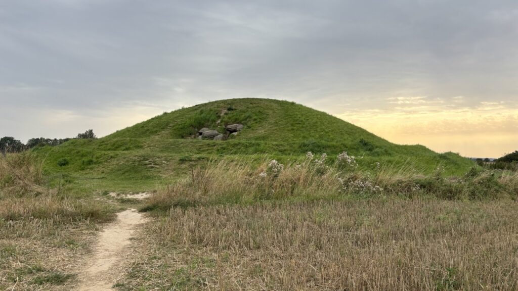 Nous quittons Copenhague et nous rejoignons la côte Est du Danemark pour une jolie découverte. Les falaises de craie. C’est un endroit touristique et très bien aménagé. La descente à la plage se fait par environ 500 marches d’escalier. Cette plage est magnifique, les falaises blanches tombent dans la mer en lui donnant une couleur laiteuse. Le dépaysement est total. Les lumières, les couleurs, la chaleur retrouvée, rien ne correspond à ce que nous avons déjà vu en Scandinavie. C’est en cherchant un bivouac que nous arrivons sur le parking d’un Tumulus très bien conservé. C’est une tombe mégalithique à double entrée. L’accès à la tombe est possible par un très long couloir un peu trop bas et trop long pour que je tente la visite mais cela doit être impressionnant. Après cette journée riche en découverte, nous réfléchissons à la suite de notre voyage. Nous ne sommes pas très loin d’un ferry qui rejoint l’Allemagne. Si nous poursuivons notre road trip, cela nous fait remonter vers le nord pour rejoindre le centre du Danemark avant de rejoindre l’Allemagne par des ponts. Estimant que nous avons fait assez de kilomètres, nous réservons un ferry. Il nous faudra deux jours de route pour rentrer à la maison après 27 jours d’absences et un total de 5092 kilomètres.