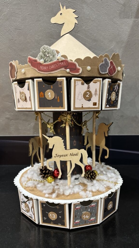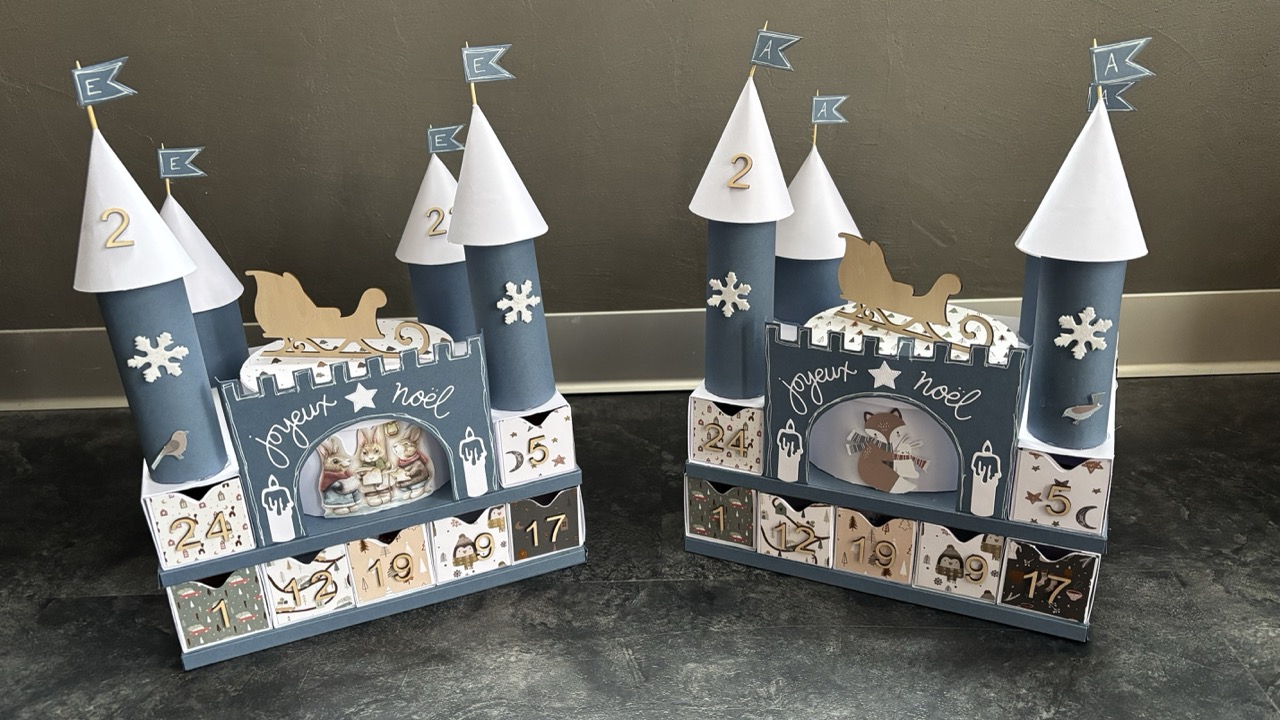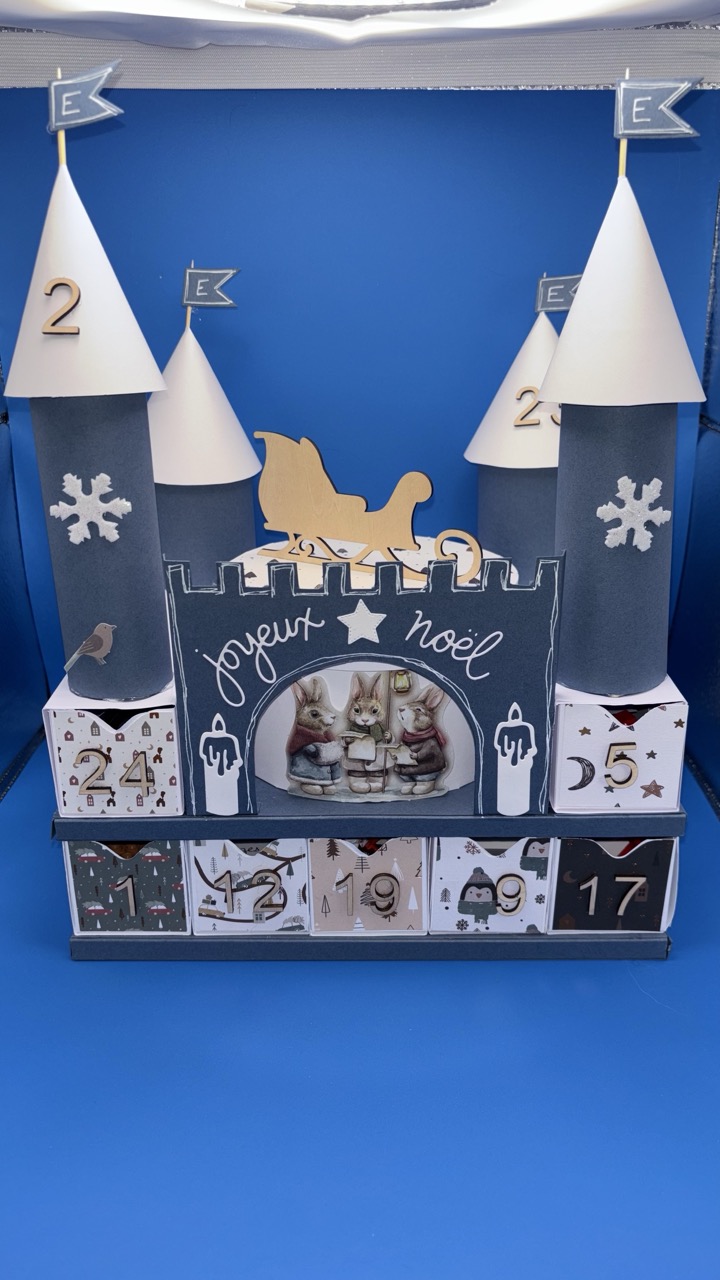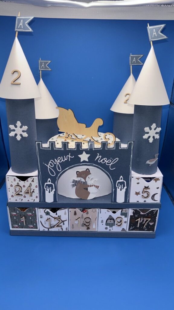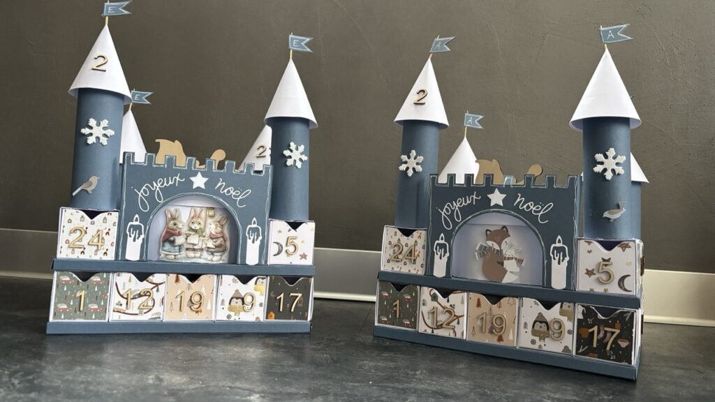 Ces Châteaux sont bien sûr les modèles que j’ai réalisé l’année dernière. Je dévoilerai l’année prochaine ceux que je termine pour Noël 2025. Les calendriers que j’ai réalisé pour Noël 2023 ont eu un grand succès. J’en ai réalisé une troisième version cette année pour les filles d’une collègue.