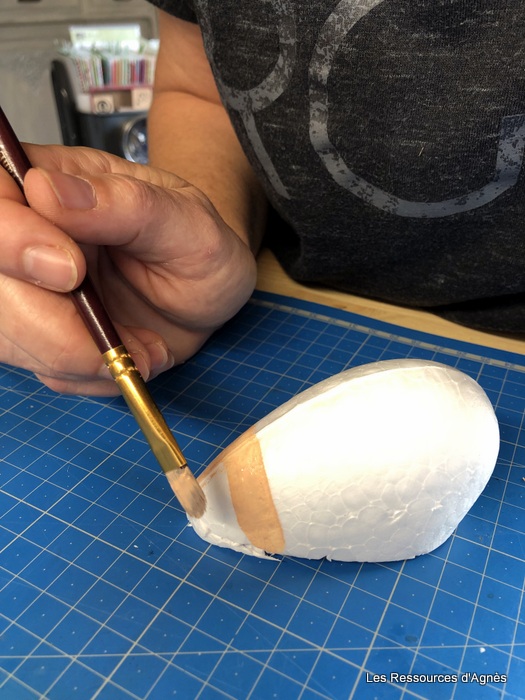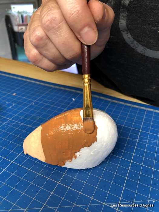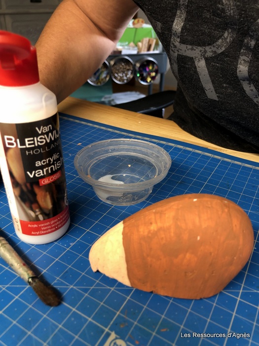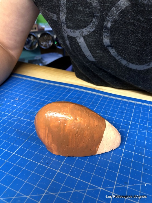 Comme pour « cœur Hérisson », j’ai utilisé un demi cœur à la place d’un demi œuf que j’ai peint avec de la peinture acrylique. Pour donner un peu de brillant, j’ai mis une couche de vernis (acheté chez Action). Pour ceux qui ne veulent pas se salir les doigts, on peut tenir le demi cœur avec un pique à brochette.