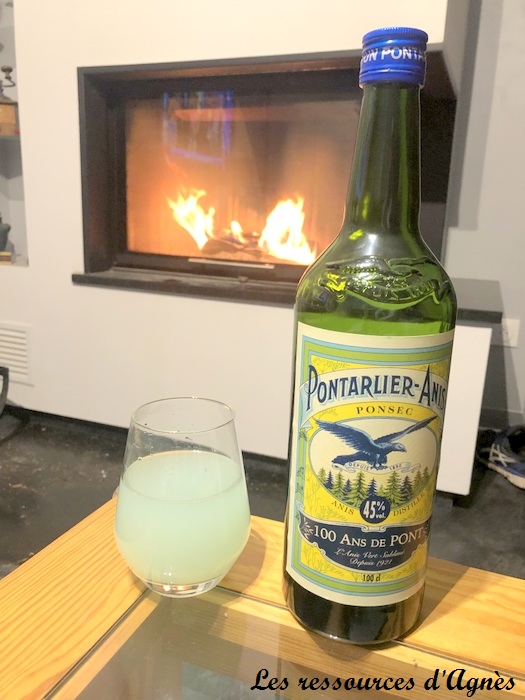 Pour ceux qui ne connaissent pas, le Sapont est un apéritif local. De la liqueur ou du sirop de sapin et du Pontarlier-Anis. Lien de la distillerie. A consommer avec modération bien sûr ! Santé !