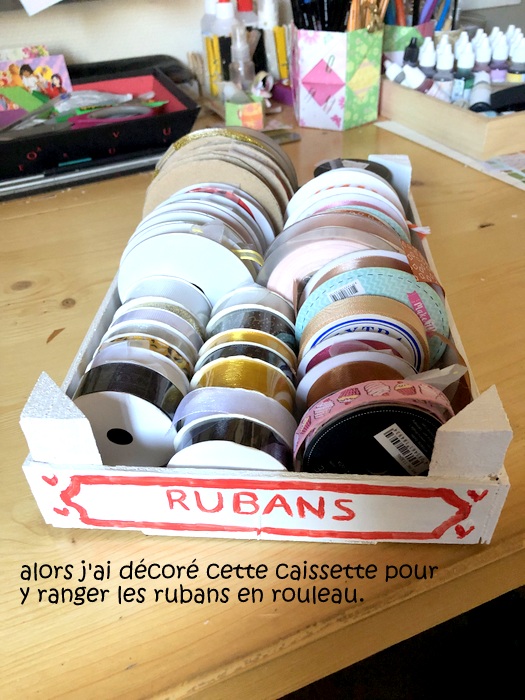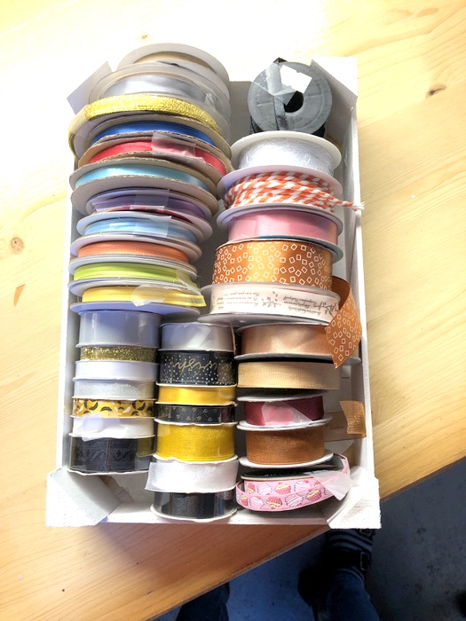 Le mois de décembre est souvent chargé en préparatifs de Noël, en réalisations et bricolages de tous genres. En janvier j’ai l’habitude de mettre de coté ce que j’ai utilisé pour ces préparatifs et de remettre un peu d’ordre dans mon matériel avant d’attaquer de nouveaux projets. Ce début d’année, j’ai remis un peu d’ordre dans mes rubans qui commençaient à se dérouler et à s’emmêler. J’ai profité de ce petit rangement pour faire quelques photos.