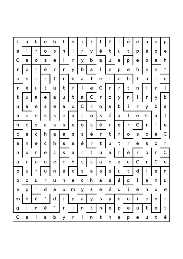 En cherchant un peu sur ce site, je me suis amusée à faire un labyrinthe avec une phrase. Est-ce que vous arrivez à lire mon message ?