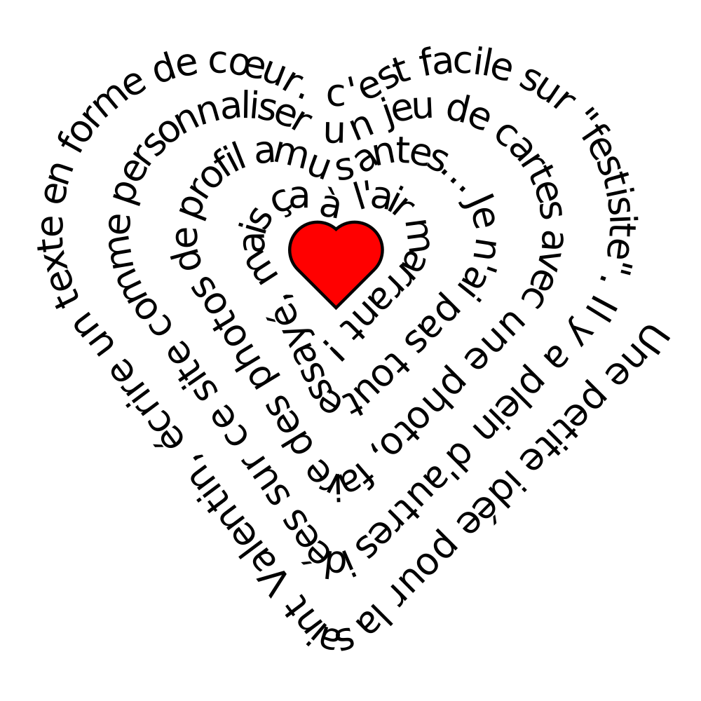 Dans un précédent article, je jouais avec les mots pour faire des petites compositions. J’ai découvert un autre site pour jouer avec les phrases. On peut écrire des textes sous forme de spirales, de vagues et aussi en forme de cœur. Je reconnais que ce n’est pas facile à lire, mais cela peut être une idée sympa pour une invitation pour la Saint Valentin par exemple.