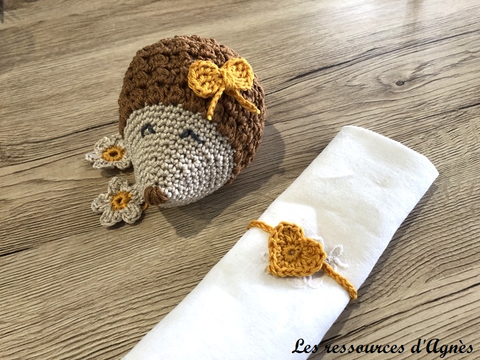 Pour ma deuxième réalisation, je n’ai pas pu résister au petit hérisson. C’est un tuto gratuit, très bien expliqué, mais… Je ne savais faire que la maille serrée. Pas de soucis pour réaliser le museau. Mais pour le reste du hérisson, maille pop corn, bride, demi bride, double bride… Merci YouTube. J’ai trouvé des vidéos très courtes pour débutant qui montrent bien comment faire ces points. Pour réaliser le petit nœud, j’ai suivi un tuto pour débutant sur YouTube.