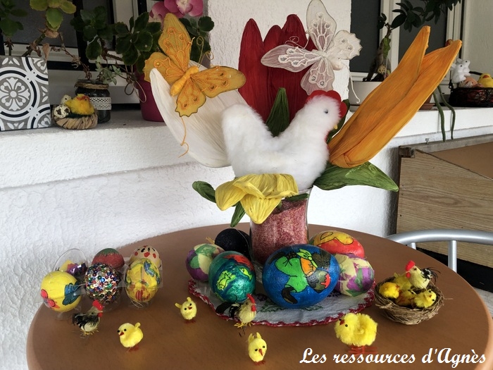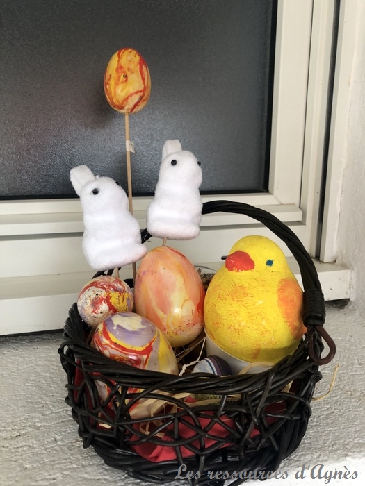 Il y a longtemps que je n’ai pas fait de décorations de Pâques. Je me contente cette année encore de ressortir les petites décorations que mes enfants ont réalisées à l’époque. 20 ans après, elles mettent un peu de couleurs dans la véranda.