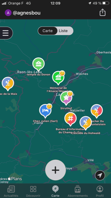 L’application nous permet aussi de découvrir des lieux notés par d’autres voyageurs et de partager nos visites. Nous pouvons aussi enregistrer les lieux en privé afin qu’ils ne soient pas visibles par les utilisateurs qui sont abonnés à notre compte. Le gros inconvénient de cette appli est qu’il faut avoir du réseau pour suivre son parcours. C’était un peu compliqué dans les Vosges ! Heureusement, Laurent a un GPS dans la tête, et surtout des applications lui permettant de télécharger des cartes et les consulter hors réseaux ( Maps.me, application gratuite). Personnellement, j’aime bien me référer à la bonne vieille carte routière.